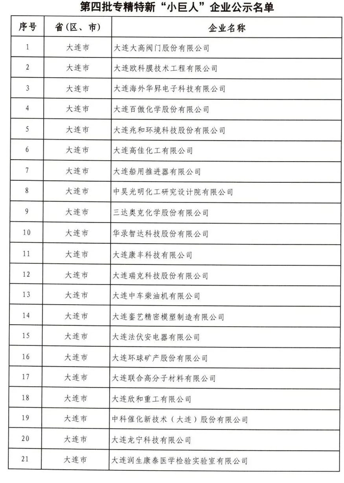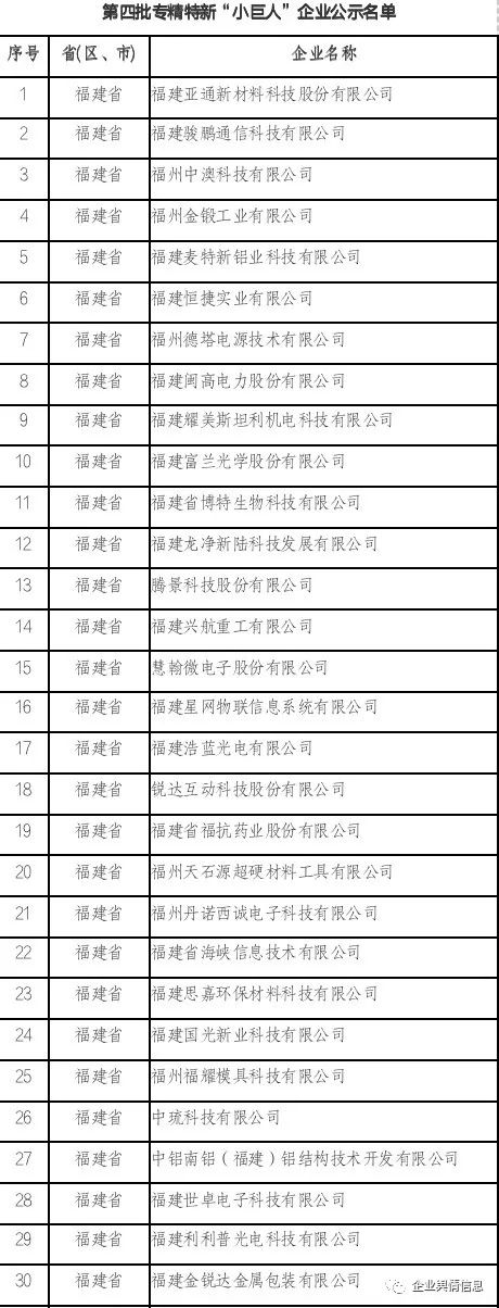 第四批专精特新“小巨人”企业公示名单(65家)