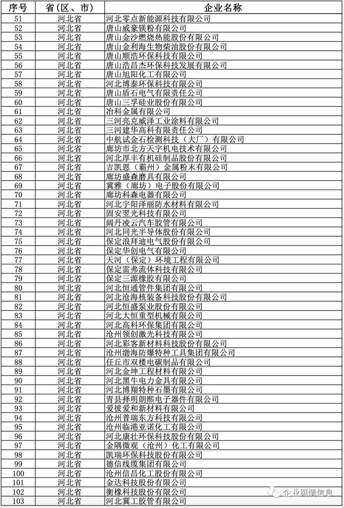 | 序号 | 省(区、市) | 企业名称 |