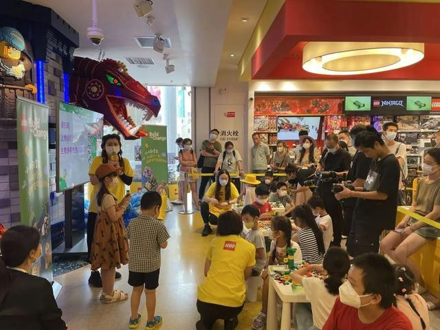 除了庆生蛋糕模型亮相,人民广场旗舰店内还举行了一场别开生面的“小小创变家”专场活动,邀请孩子们以“保护生物多样性”为主题,在创造性的乐高积木拼搭中,共同探索生物多样性,了解相关知识并通过拼搭表达他们对于未来、尤其是可持续发展相关议题的想法。