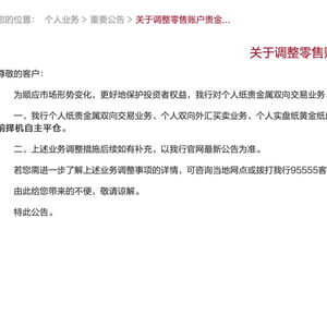 8月6日,招商银行在官网发布公告称,为顺应市场形势变化,更好地保护投资者权益,将停办个人纸贵金属双向交易业务、个人实盘纸黄金纸白银买卖业务及“招财金”等业务。
