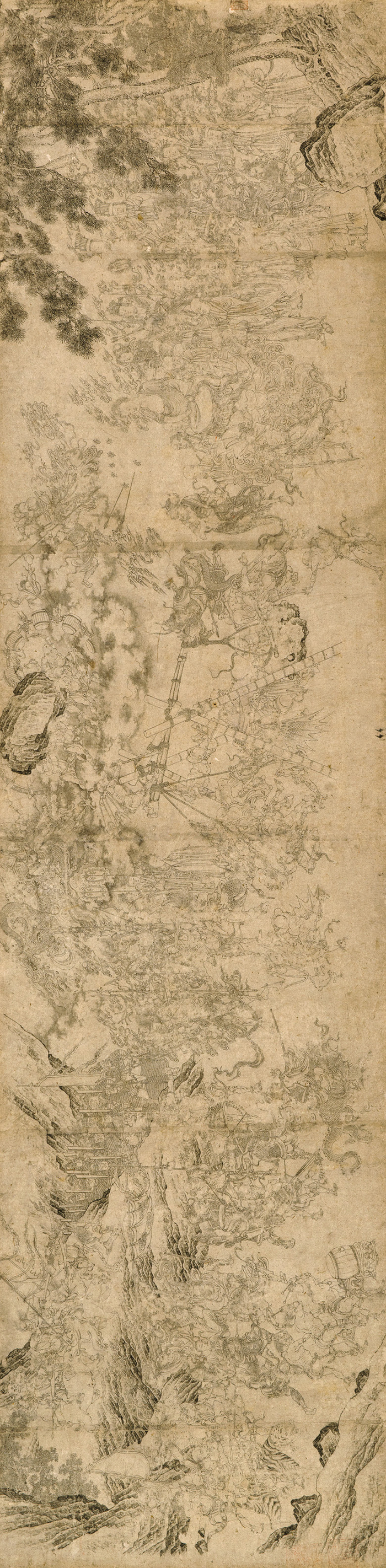《劫钵图》载王新城《池北偶谈》,有邓文原、赵仲穆及秋壑、钤山图书,后有董文敏书《宝积经》宾伽罗事、吴匏庵、沈石田二跋,与此卷不符。相传当时绘图不一本,是卷向为朱氏家藏,后归陆氏,亦百余年矣。今陆君啸波得诸族中,玉峰故物不致流传他所,定有佛力呵护。不知新城所见,又落谁手。展观数四,欢喜赞叹,敬识于尾。时咸丰己未夏六月,元和韩崇题。