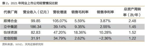 当前我国再生铝企业的产品同质化较高,再生铝企业之间的主要竞争因素是价格。再生铝行业内的企业毛利率普遍较低,如果不能维持较高的资产周转率,企业将难以生存下去,维持高资产周转率需要有丰富的经营管理经验,相对大企业,小企业缺乏这种经验,因此容易被市场淘汰。未来,我们认为,具备规模优势的企业市场份额将进一步扩大,我国再生铝市场集中度也将进一步提高。