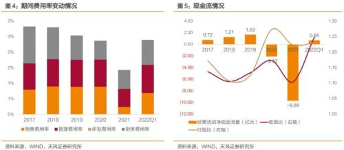 2022年第一季度,公司销售费用率0.70%,同比下降0.24pct;管理费用率0.89%,同比下降0.19pct;财务费用率0.79%,同比上升0.36pct;而研发费用投入为0。期间费用率整体水平偏低,且无研发费用。