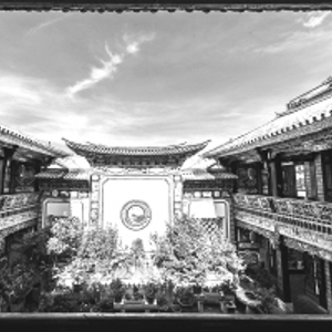 在白族民居中,天井是主要活动空间,白族人通常在此种植花草树木;照壁建构起私密空间,同时起到遮阳挡风的作用,是人对场地自然环境的回应;整个合院则反映了中国人以家庭为单位的和合理念,形象地传达出中国传统文化的深厚意蕴。