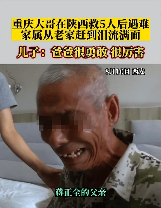 8月11日,据重庆广电集团视频报道,近日,在陕西西安,重庆在陕西西安务工男子蒋正全勇救5人牺牲,他父亲赶到陕西,泣不成声。