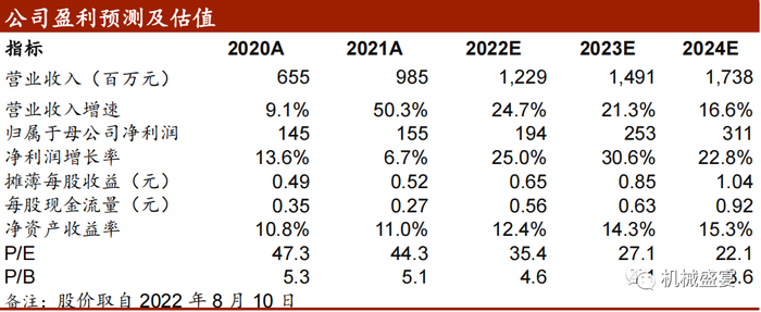维持公司“买入”评级。公司是我国自润滑轴承行业龙头企业,是中国核心零部件“进口替代+走出国门”的典型代表。受益于公司汽车及工程机械等下游行业的持续回暖,公司业绩快速增长可期。此外,滑动轴承替代滚动轴承有望在风电领域快速渗透,风电业务有望打开公司第二成长曲线。考虑到原材料价格有望逐步回落,公司盈利能力改善可期;我们上调公司盈利预测,预计2022-2024年的归母净利润分别为1.94、2.53、3.11亿元(前值分别为1.76、2.07、2.39亿元),对应PE分别为35.4、27.1、22.1倍。维持“买入”评级。