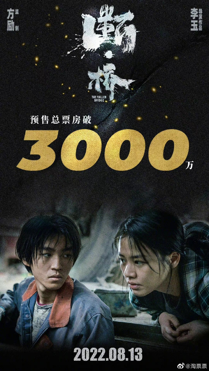 此外,截至8月12日14时54分,明日上映的《断·桥》预售总票房已突破3000万。