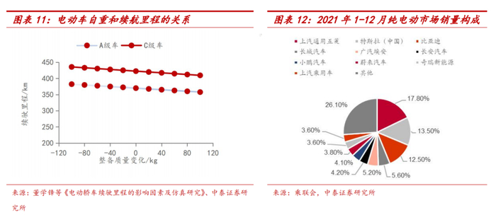 之所以看好从0到1的突破,我们认为是供需两方面正在产生交集,需求上,汽车市场去年以来最明显的变化在于新能源电动车销量和渗透率的爆发式增长,2022年上半年电动车渗透率已经高达21.6%。根据我们的统计,同级别车型下新能源电动车整备质量,也就是自重要高于传统燃油车,通过减重来提升续驶里程的需求更明显,而配备碳陶盘对电动车可带来至少10%的续航里程提升。同时,减重提升续航的效果对不同级别车型也有不同,C级电动车续航里程与整备质量的相关系数为-0.13,而A级车为-0.12,也就是说同等幅度减重带给C级电动车的续航里程提升更明显。C级车为中大型车,售价基本在30万及以上,C级车用户对车的性能要求更高,对价格也更不敏感。