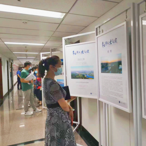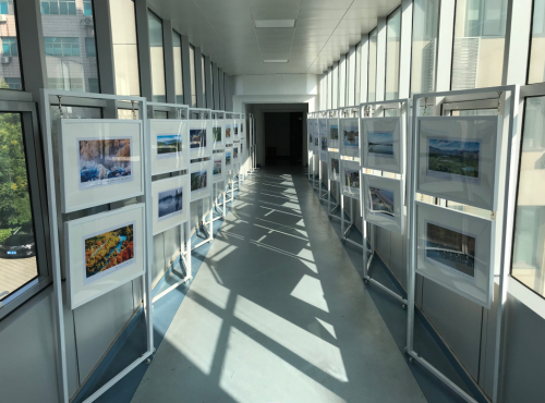 (摄影作品展水利部海河水利委员会展区,展品整齐排列。)