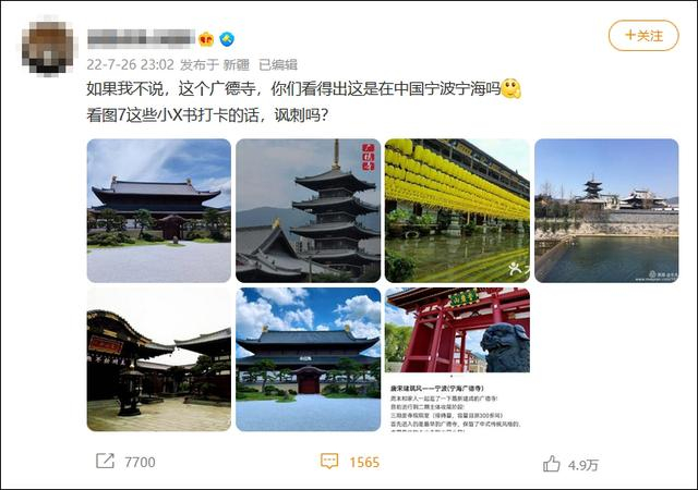 “如果我不说,这个广德寺,你们看得出这是在中国宁波宁海吗?”近日,位于浙江省宁波市宁海县城的广德寺在网上引发争议。