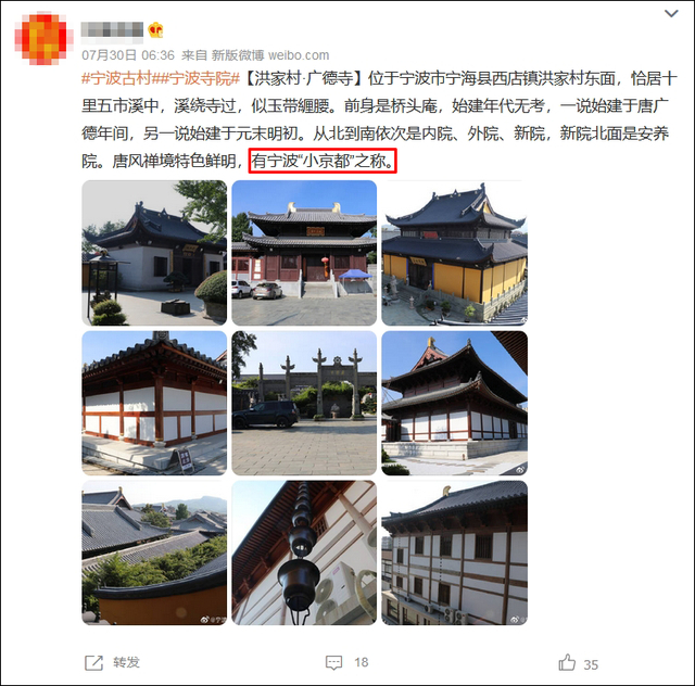 不少账号说它“唐风禅境特色鲜明”,是“宁波小京都”——