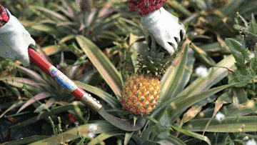 老艺术家发现,不论屋前屋后、平地还是山坡,都可以成为神湾人种植菠萝的场所,“最好吃的菠萝,都是长在山坡上的”,农场老板告诉老艺术家,“菠萝虽看似普通,却十分娇贵,三年只有两造,每颗菠萝从种植到成熟至少需要1年半,想要好吃,坡度、水土和光照条件缺一不可,但长在山上的菠萝产量少。”