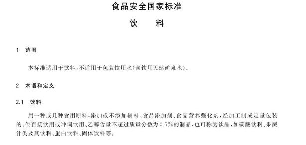 《食品安全国家标准 饮料》明确