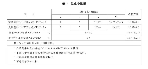新国标根据菌落总数与人体健康的关系,结合行业生产现状,修订了饮料产品的微生物限量要求,其中对固体饮料的菌落总数要求m值(最小值)统一修订为10000,并明确菌落总数指标不适用于添加了需氧和兼性厌氧菌种的活菌(未杀菌)型饮料。