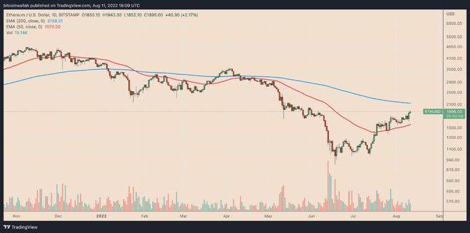 在 Goerli 更新后,以太币价格上涨 5% 至约 1,950 美元,为两个多月以来的最高水平。与此同时,某些可以从成功的合并中受益的加密资产正在经历上行趋势,在过去的一个月里甚至超过了 ETH。