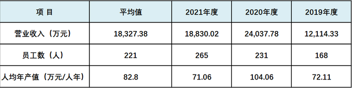 依据发行人招股书披露的相关数据,估值之家整理出发行人的人均年产值见下表: