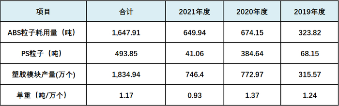 我们再根据发行人披露的生产数据推算出塑胶模块的单重,具体见下表: