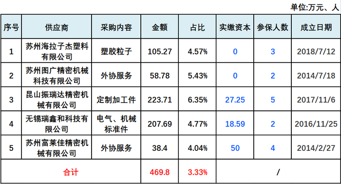 估值之家同时也整理出较为异常的供应商,具体情况见下表: