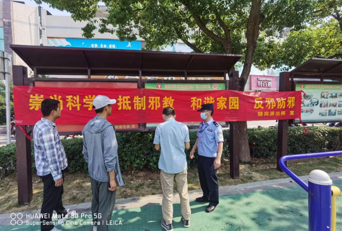 社区民警在小区人员聚集的广场上拉起横幅,向周围群众发放宣传单页,耐心地为群众解答相关问题,从什么是邪教、邪教的危害、如何识别邪教,遇到邪教怎么办等方面开展宣传教育,向居民群众形象生动地讲解反邪教知识,倡导居民崇尚科学、反对邪教,并耐心指导群众关注“中国反邪教”“江淮正道”微信公众号,引导群众深入了解邪教组织的真实面目。