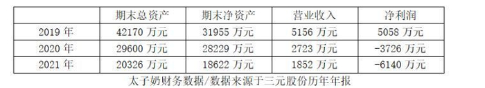据三元股份的财报披露,2019―2021年太子奶的营收分别为5156万元、2723万元、1852万元,分别同比下降46.07%、47.19%、31.98%;2012年―2021年,太子奶只有2015年、2019年净利润为正,其他年份均为亏损。截至2021年末,太子奶亏损达6140万元。