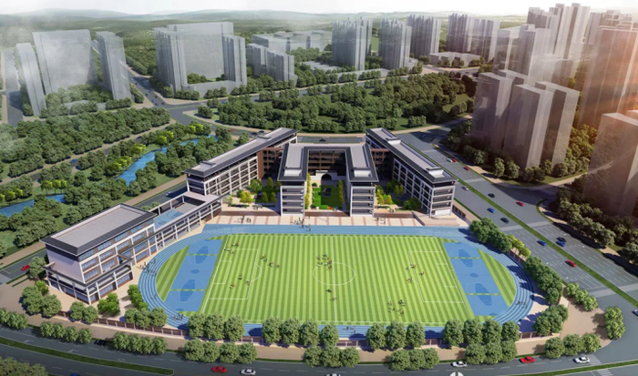 金鼎中学改扩建工程改造面积约为6856㎡,建设内容包括运动舞台、教学楼、行政楼、五人制足球场、报告厅等项目。