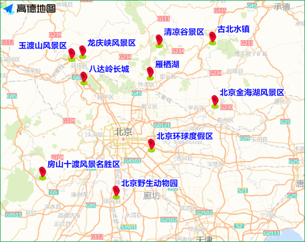当前仍处于旅游旺季,近期环球度假区、古北水镇、野生动物园、八达岭、清凉谷、十渡、金海湖等临水景区和公园较为热门,周边停车资源饱和,连接景区和城区的高速公路、国道部分路段也经常出现短时车流集中的情况。