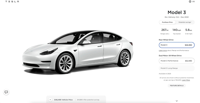 特斯拉现在宣布在美国和加拿大市场暂停接收新的 MODEL 3 长续航版订单。正如您在下面看到的,Model 3 Long Range 现在显示为灰色,无法选择订购。由于汽油价格上涨和美国政府的财政补贴政策等诸多因素,消费者对电动汽车的需求呈现了井喷式发展。