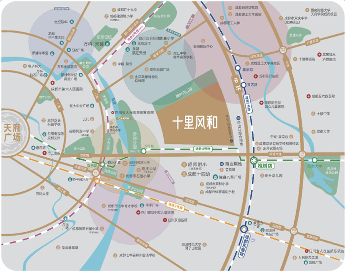 翻看成都地图,项目西接万年场、攀成钢,东接十陵,北接杉板桥、建设路,南接东客站。中环路和成洛大道两条城市主干道辐射整个区域,再加上已经通车的地铁4号线和7号线,超便捷的通行网络让其可以快速与城东已成熟的各项优质资源形成无缝对接。