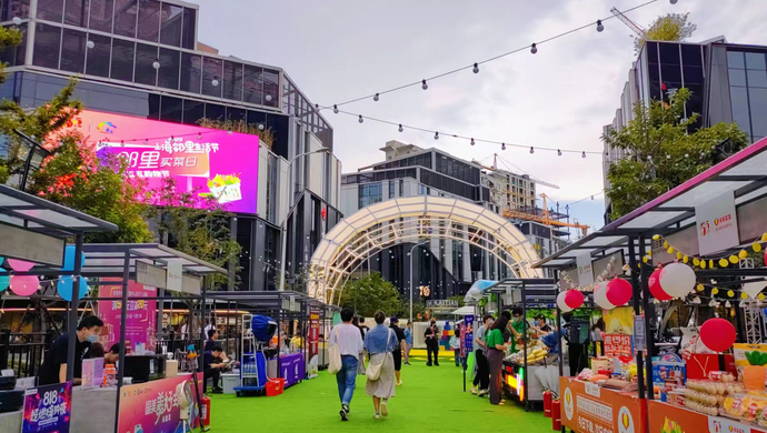 改变来自于商办综合体的快速崛起,尤其是庭院式商业街区在上海各地的出现。从徐汇绿地缤纷城到虹口瑞虹天地月亮湾,一辆辆市集小推车载满文创手作、趣味小吃,在节假日成为商场引流的标配,也晋身为商业体打响知名度、与周边邻里社区拉近距离的重要方式。