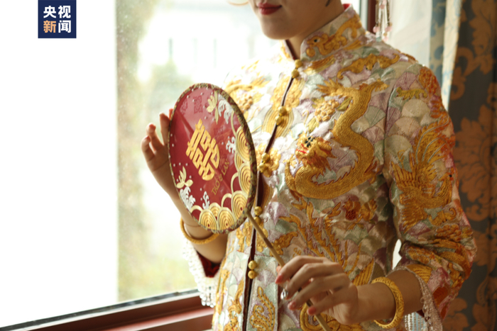 穿上了姚建萍亲手绣制的嫁衣