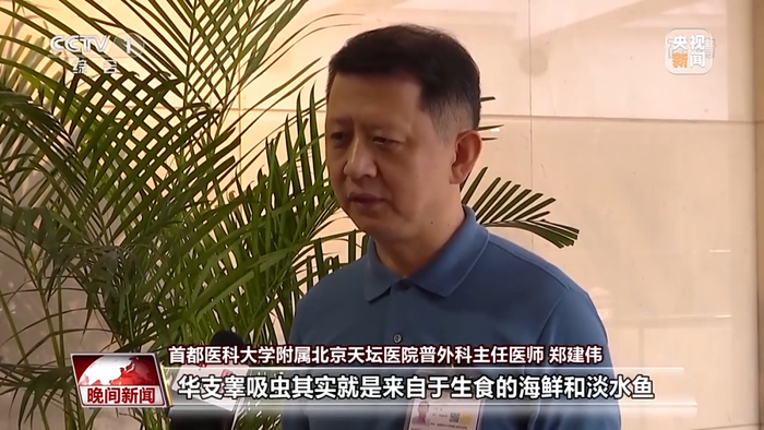 首都医科大学附属北京天坛医院普外科主任医师 郑建伟:华支睾吸虫其实就是来自于生食的海鲜和淡水鱼,引起东南沿海肝硬化、肝癌的风险非常高。华支睾吸虫与肝硬化和肝癌的风险是大于正常的5倍以上,一般在4.5到6.1倍左右。