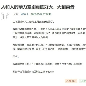 人和人之间的精力差别,有时候大到离谱:同是朝九晚五,有人下班后只想躺着缓缓,看综艺都觉得累,也有人还能去做运动、学编程、做兼职……