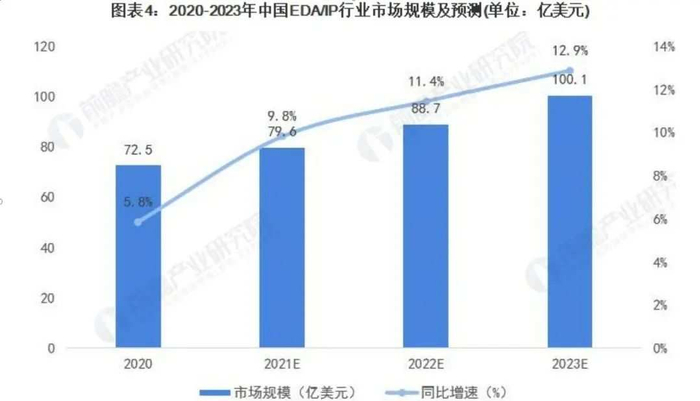 此外,我国也发布多项政策支持国内EDA/IP行业的发展,并且在政策加码下,或将会迎来新一轮的发展,根据到2023年,行业市场规模有望突破100亿美元,行业CAGR达:11.4%。