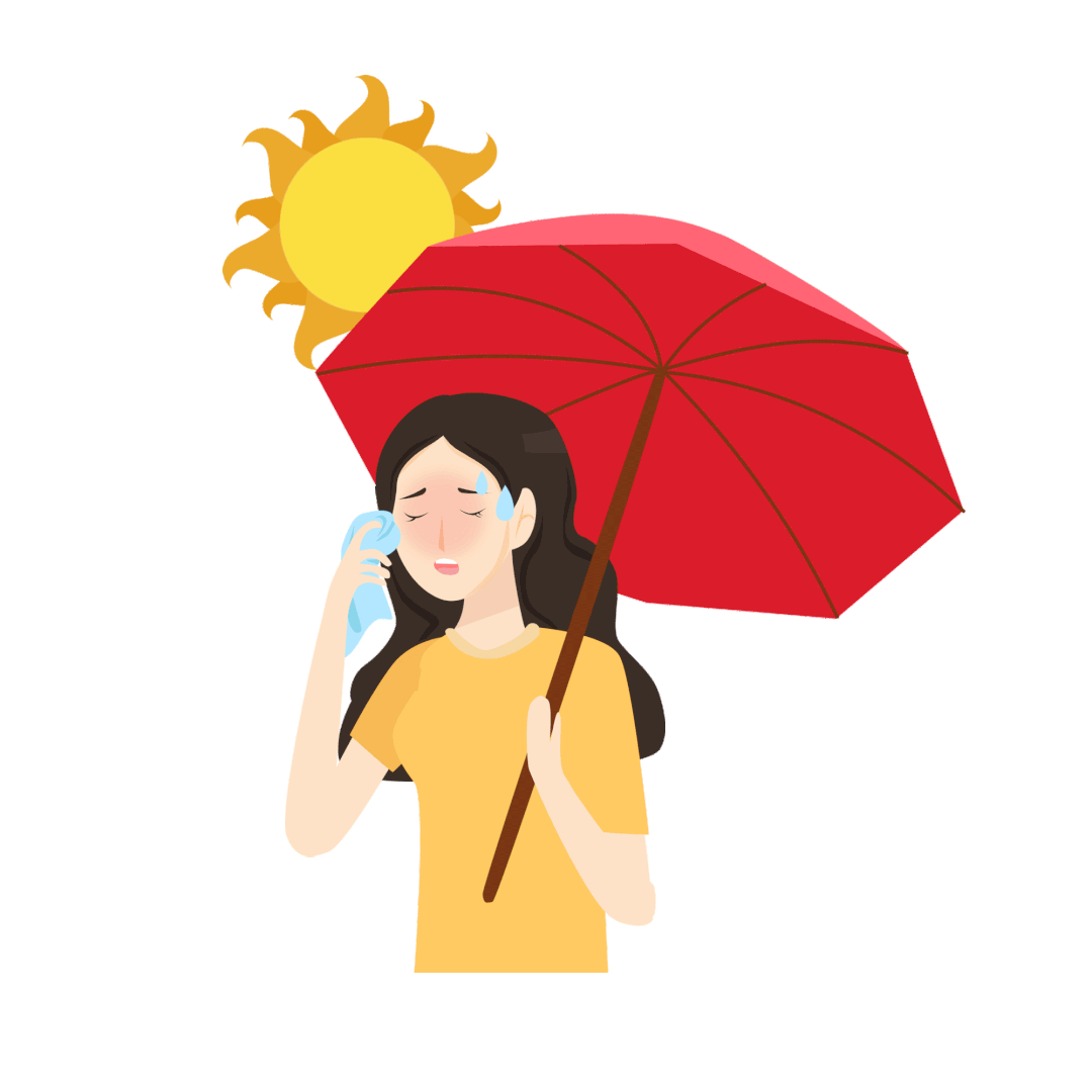 高温环境下,人体会用各种方式散热,首先就是打开毛孔出汗。如果疯狂出汗,热量却还是散不出去,就会出现体温升高、心跳加快、头晕、全身无力、注意力不集中、动作不协调等症状,这时已经是中暑的初级阶段——先兆中暑