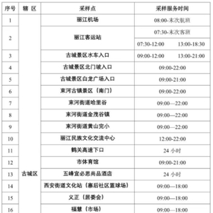 《通告》最后称,后续将根据疫情防控形势适时调整,并附上丽江市免费核酸采样点信息。