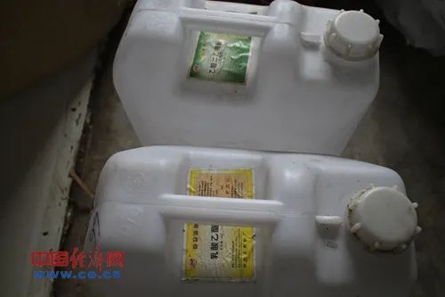现场发现的食品添加剂白色塑料桶。(市场监管总局供图)