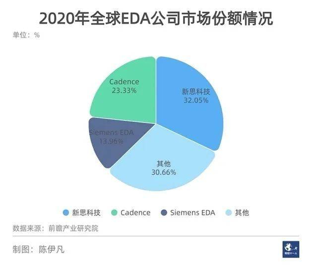 根据第三方数据分析机构前瞻产业研究院统计,全球EDA市场有大约80%被新思科技、Cadence和Mentor Graphics三家国外公司占领。其中,新思科技和Cadence总部在美国。中国也是这三家EDA公司的主要市场。根据第三方研究机构赛迪智库的统计,2020年,中国的EDA市场中,Cadence的市场份额为32%,其次为新思科技,为29.1%,Siemens EDA排名第三,为16.6%。
