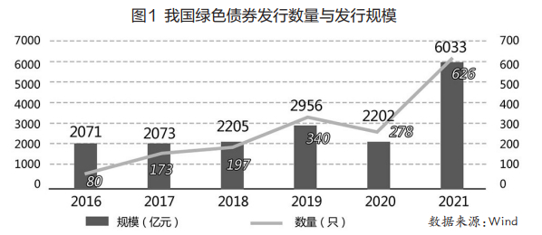 自2016年1月浦发银行发行首单绿色金融债以来,众多金融机构与企业积极参与到这个新兴市场中。此后,我国绿色债券市场蓬勃发展,每年发行额保持在2000亿元以上,2021年取得更大突破,全年共计发行626只,发行总金额超过6000亿元,余额达到了1.1万亿元,稳居全球前列。(见图1)