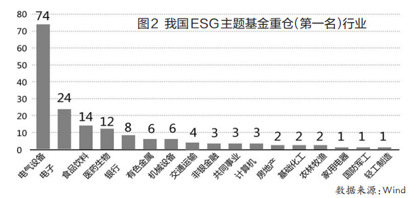 从ESG主题基金持仓行业配置来看,根据可比的166个产品(主要是混合型和股票型)最近一期报告披露(2021年年报),有74个ESG基金产品重仓持有电气设备行业,24个重仓电子,合计占比近60%,这与2021年新能源板块及高精尖科技产业崛起相符。(见图2)