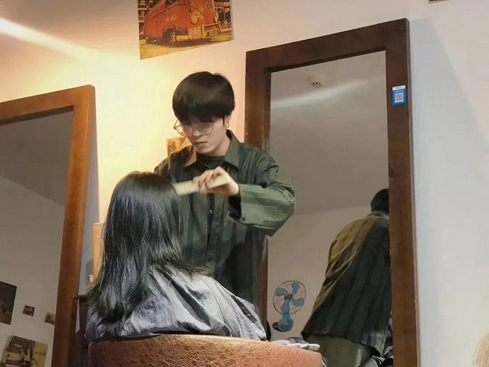 在这个规则里,我们反倒可能有日常没有的交流。比如两年前,有一个客人来找我剪了一次短发,之后因为工作的原因,她被调到了北京。前两天,她从北京回来,又找我剪头发,还告诉我,在北京工作的两年,她没有动自己一根头发,没有踏进理发店一次,希望留着给我剪,听到她这么说,我快感动死了。