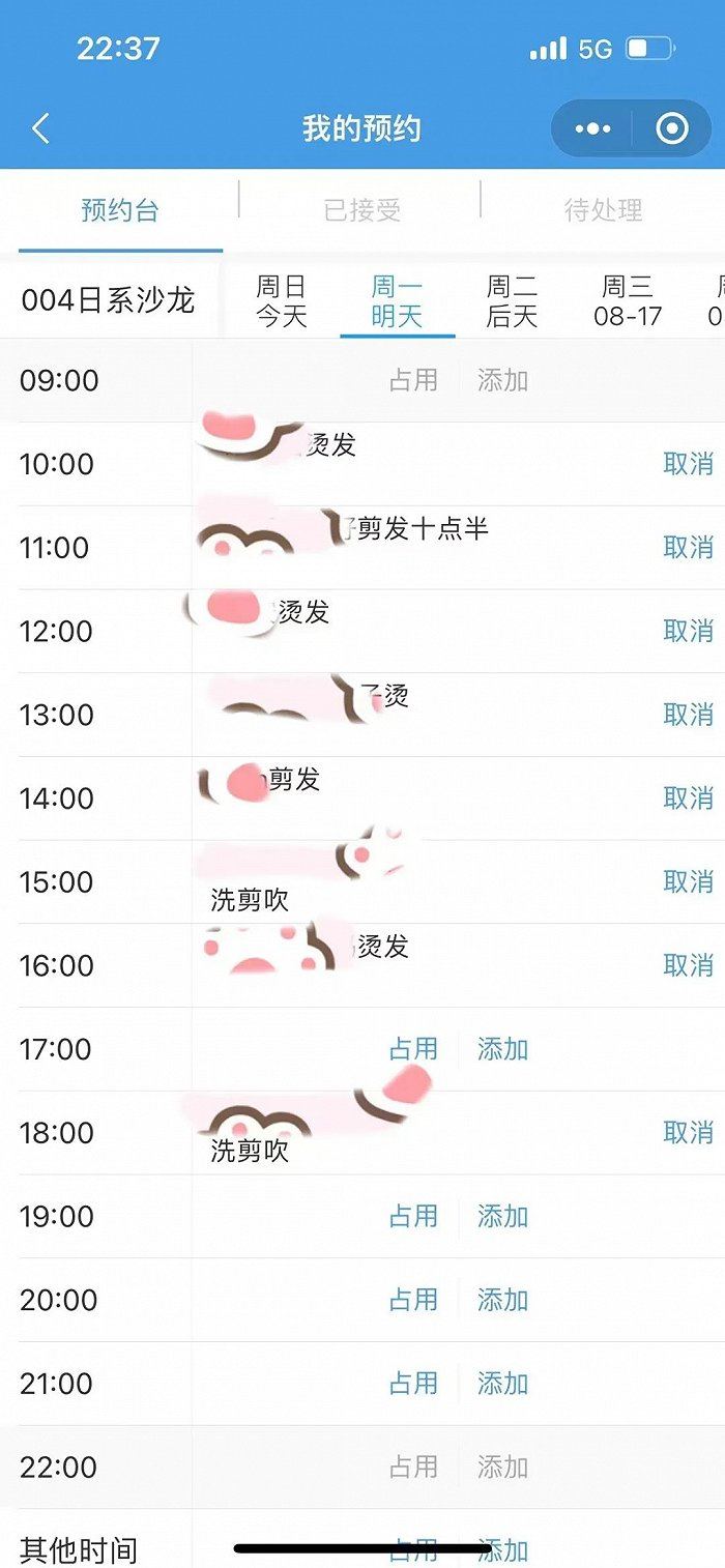 ▲ 安雅的预约单,从早上开始一个接一个。图 / 受访者提供
