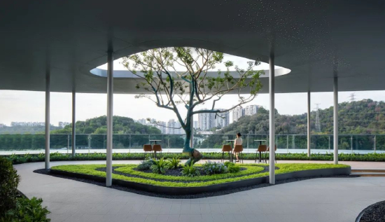 约5万㎡高低差式园林,将公建配套设置在西北侧半露明地下,释放地上社区空间给业主,通过与自然的巧妙融合,塑造出一个立体森林社区空间。而内部景观从居住的温度、湿度、日照等综合考量,寻求与自然的和谐姿态,与外部山湖相融相合,谱写繁华与自然的双重协奏曲。
