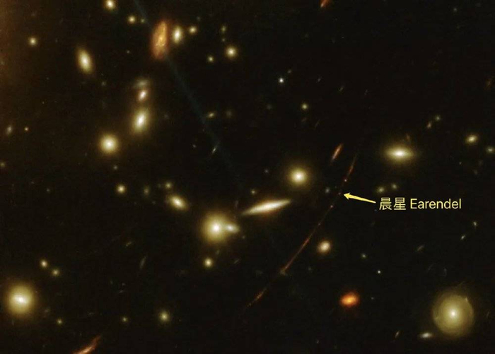 这是哈勃望远镜今年3月30日宣布发现的人类已知最遥远恒星,编号WHL0137-LS,后来以古英语中代表晨星的Earendel命名。