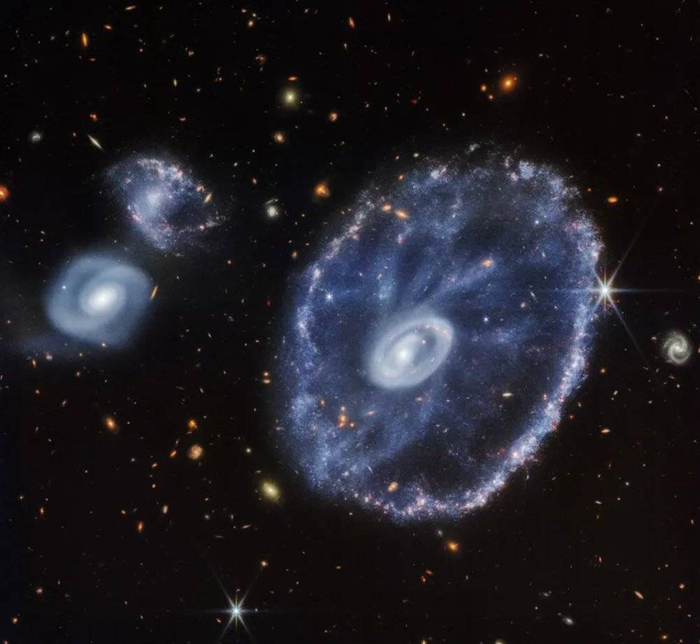 韦伯望远镜拍摄的图像提供了一个全新的视角,让我们看到了车轮星系数十亿年来的变化。