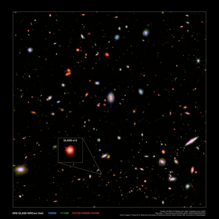 GLASS-z13,让韦伯打破了哈勃最遥远天体的纪录 | Naidu et al, P. Oesch, T. Treu, GLASS-JWST, NASA/CSA/ESA/STScI