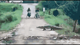 鳄鱼开始在人类村庄里出没。|Bhadbhunja News/YouTube