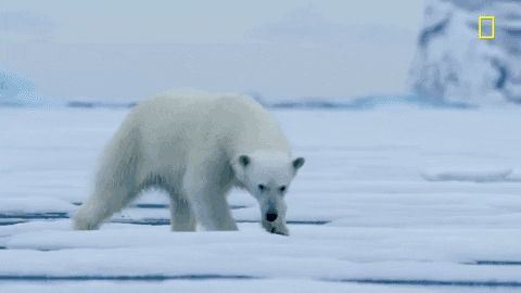 理应生活在海冰上的北极熊。| Giphy