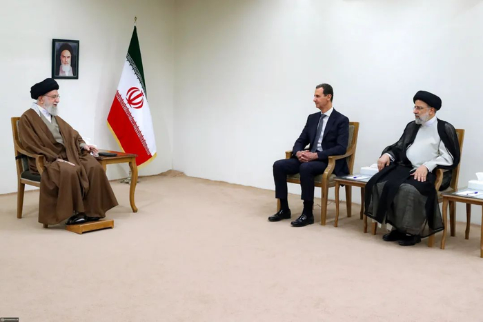 ◎ 2022年5月8日,哈梅内伊、莱希与阿萨德在交谈。