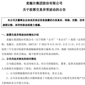 8月14日晚间,麦趣尔发布股价异动公告称,经与公司控股股东、董监高核实,公司未发现近期公共媒体报道了可能或已经对公司股票交易价格产生较大影响的未公开重大信息。
