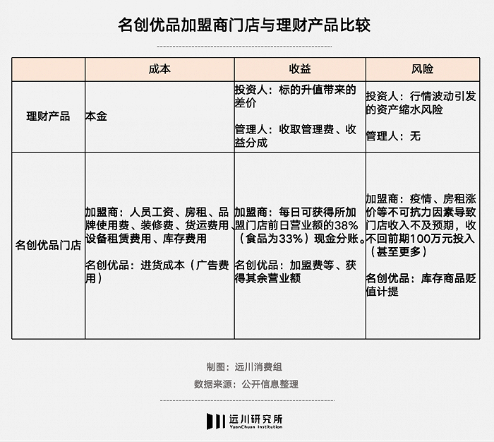 用券商的话来说[4],加入名创的年化收益率达到16%,比大多数银行理财产品的收益率还要高3-4倍,公司更是喊出了1-2年收回成本的口号。